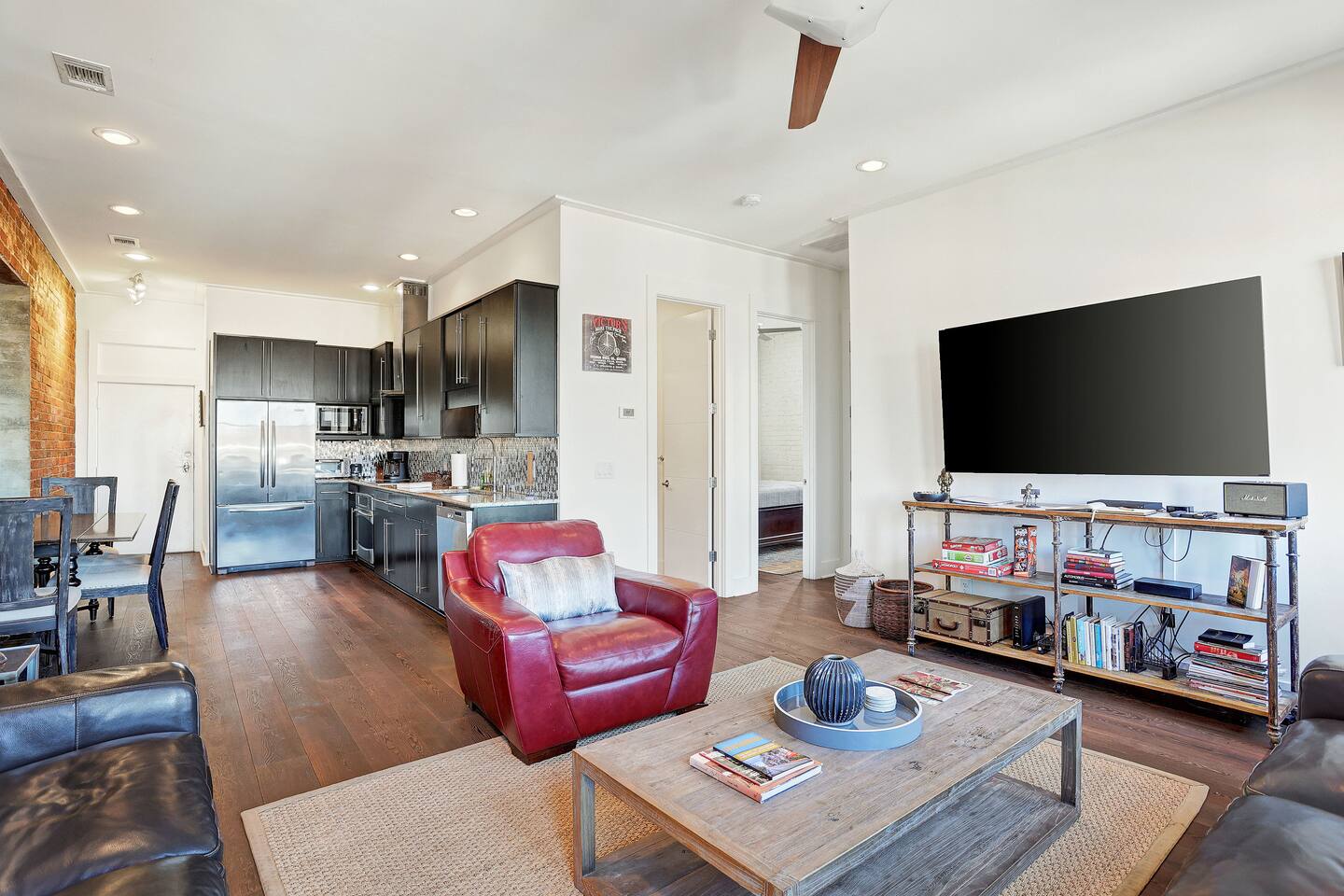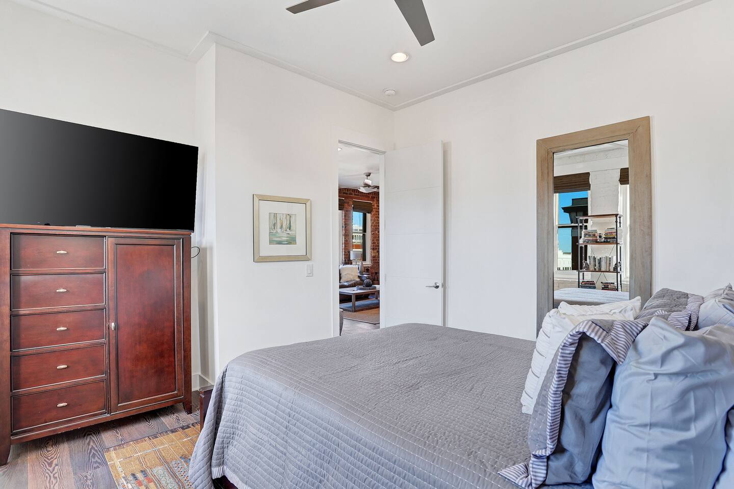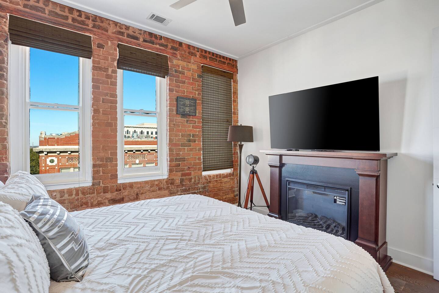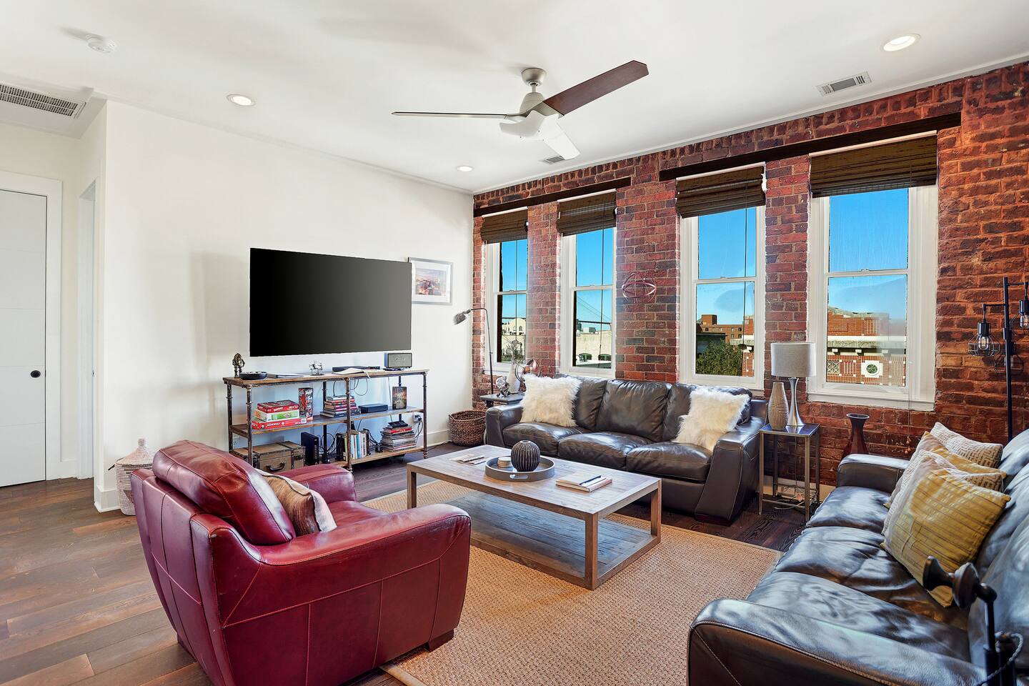 Welcome to Your Historic Savannah Retreat Step into this stunning 4th-floor condo and enjoy the perfect blend of modern comfort and historic charm. The open-concept layout features hardwood floors, exposed brick, and large windows that fill the space with natural light and frame views of downtown Savannah and the Talmadge Memorial Bridge. The fully equipped kitchen flows into the dining area, ideal for sharing meals and making memories. After a day of exploring, unwind in the cozy living room with plush seating, games, and a Smart TV for relaxing evenings in. <b>★ Living Room ★</b> ✔ Two Cozy Sofas + Armchair ✔ Smart TV + Bluetooth Speaker ✔ Downtown Views ✔ Board Games + Coffee Table <b>★ Kitchen & Dining ★</b> Whip up meals with ease in the modern kitchen stocked with essentials. ✔ Coffee Maker, Toaster, Kettle ✔ Pots, Pans, Cooking Oil, Seasonings ✔ Dining Table for 4 + Foldable Highchair <b>★ Bedrooms – 2 Total ★</b> Rest easy in two thoughtfully appointed bedrooms. ✔ Bedroom 1: Queen Bed ✔ Bedroom 2: King Bed ✔ 2 Twin Air Mattresses + Pack ’n Play ✔ Blackout Curtains + Smart TVs ✔ Noise Machines, Extra Blankets, Spacious Storage <b>★ Bathrooms – 2 Full ★</b> Freshen up with plush towels and quality toiletries. ✔ Shampoo, Conditioner, Body Wash ✔ Hand Soap, Toilet Paper, Towels Whether you're sipping coffee with a view, walking to nearby restaurants, or cozying up after a long day, this condo is your perfect Savannah escape—with the added bonus of free reserved parking in the Historic District. <b>We Provide The Following Complementary Supplies: </b> ✔3 packs of ground coffee and filters (each packet yields approx. 64oz of prepared coffee). ✔ Small container full of single serving creamers. ✔ Seasoning: Basil, Cayenne, Chili Powder, Cumin, Garlic, Italian, Onion Powder, Oregano, Rosemary, Paprika ✔ Salt, Pepper & Cooking Oil ✔ 1 roll of paper towel ✔ Dishwasher pods ✔ Liquid hand washing dish soap ✔ Antibacterial hand soap ✔ Shampoo, conditioner and shower gel ✔ 2 rolls of toilet paper per bathroom ✔ Kleenex ✔ Trash bags ✔ Laundry detergent pods ✔ Ziploc bags ✔ To-go coffee/drink cups with lid If you require more of these items then you shall have to purchase your own and sufficient to last for your stay. SVR-02953 Don't hesitate to contact us with any questions you may have. Happy Travels!