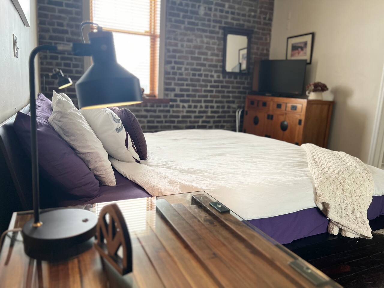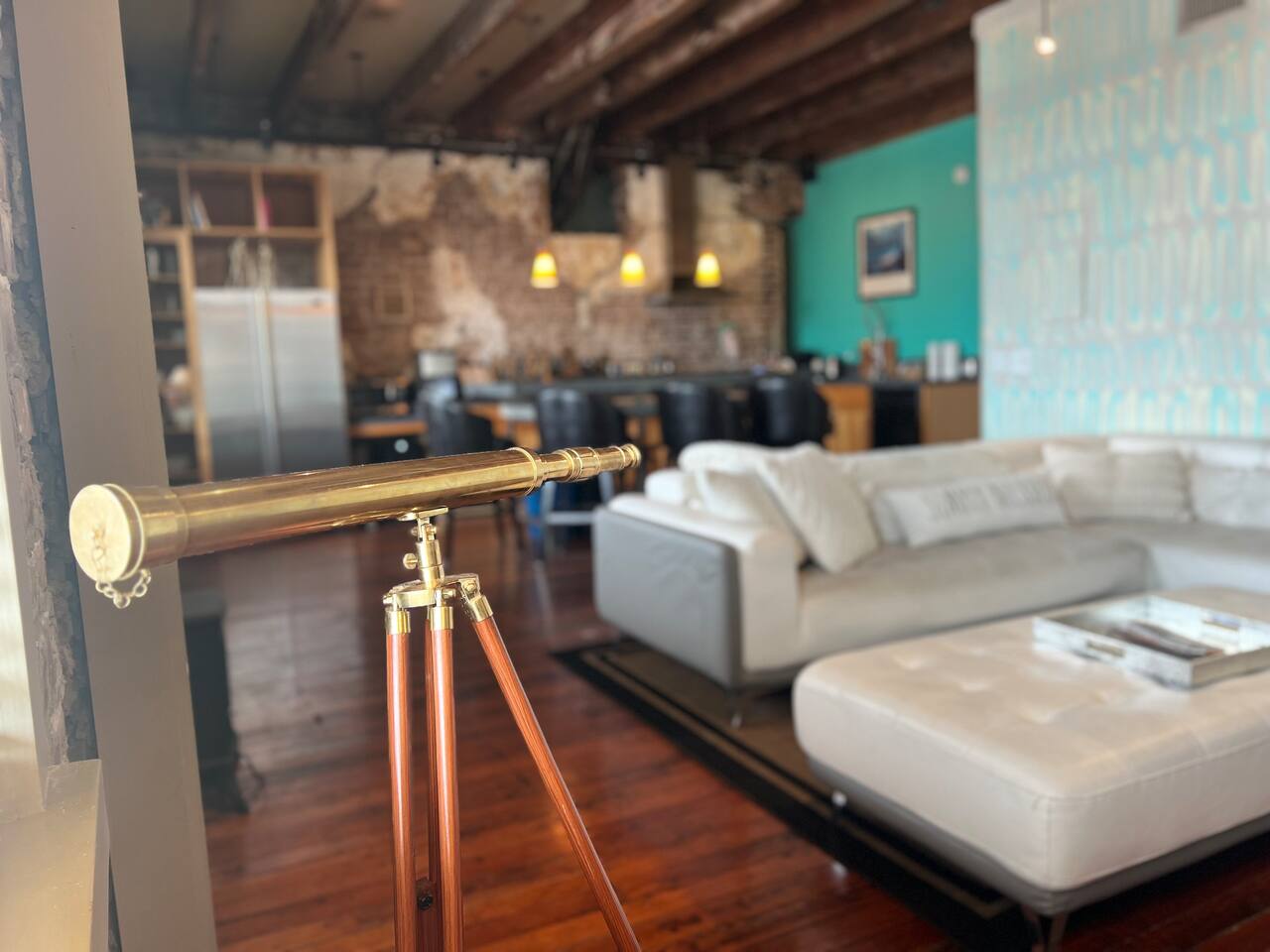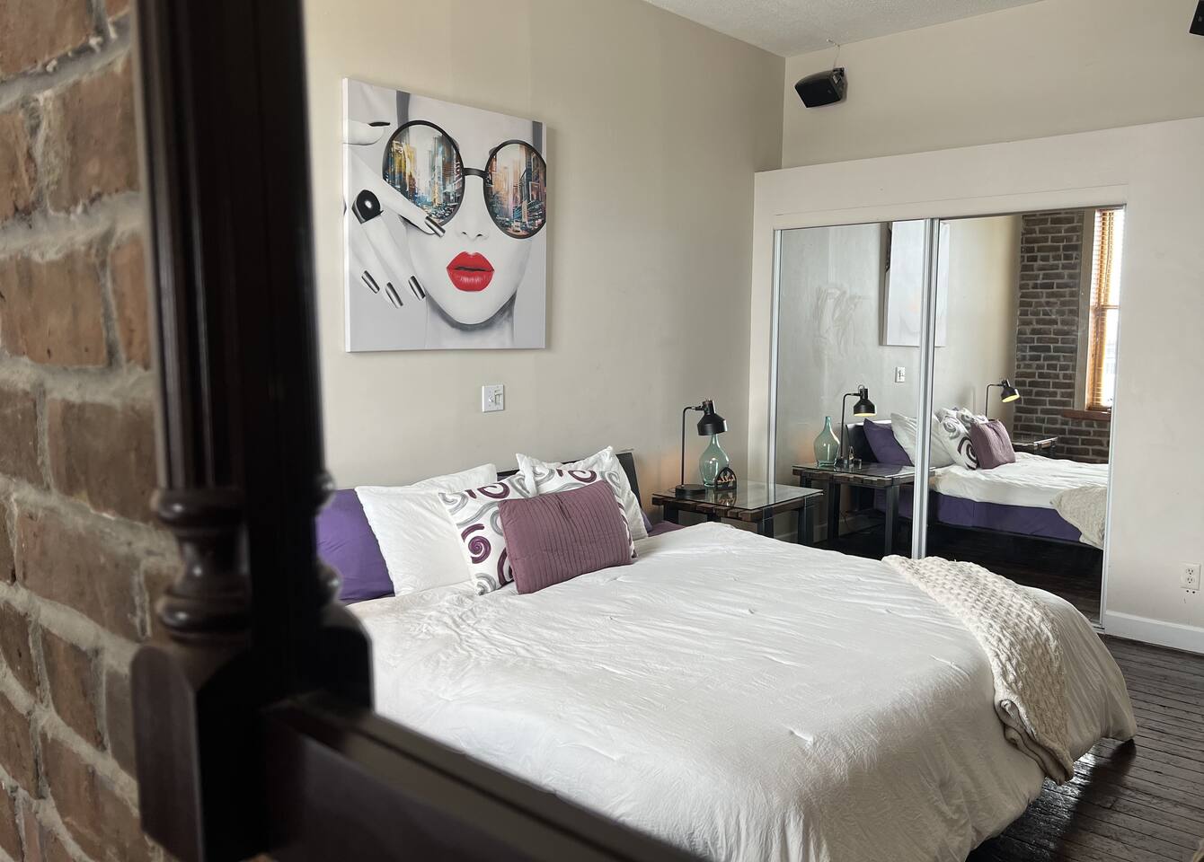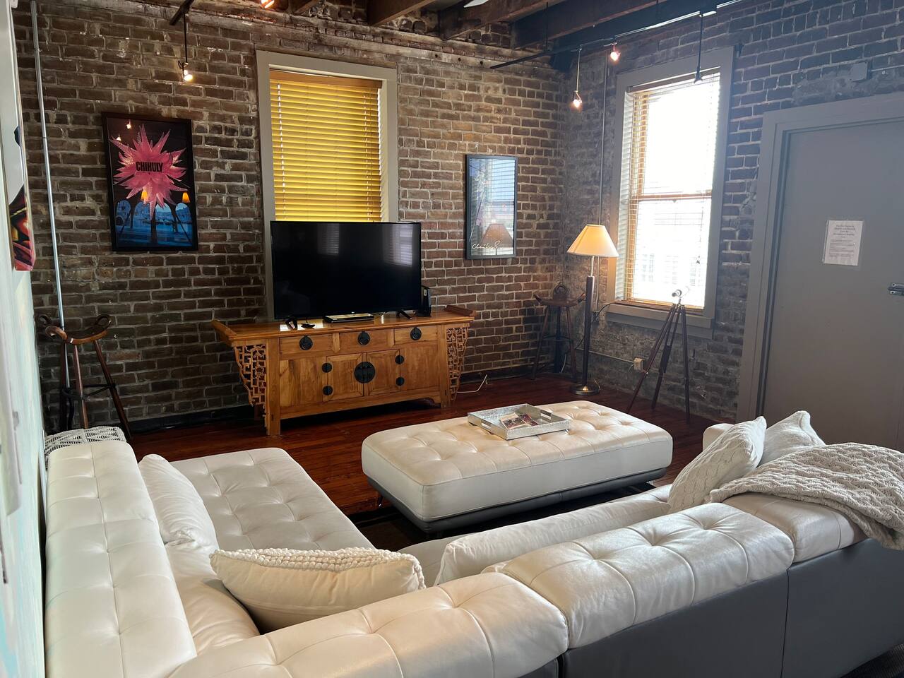 Experience the best of Savannah from the Broughton Penthouse, where timeless charm meets modern ease. This beautifully designed 2BR/2BA condo features exposed brick, elegant furnishings, and sweeping views of the Historic District skyline. Located just steps from River Street, City Market, and top dining spots, it offers the perfect downtown escape. After exploring the cobblestone streets and vibrant culture, relax in comfort and enjoy the convenience of one nearby reserved parking space.