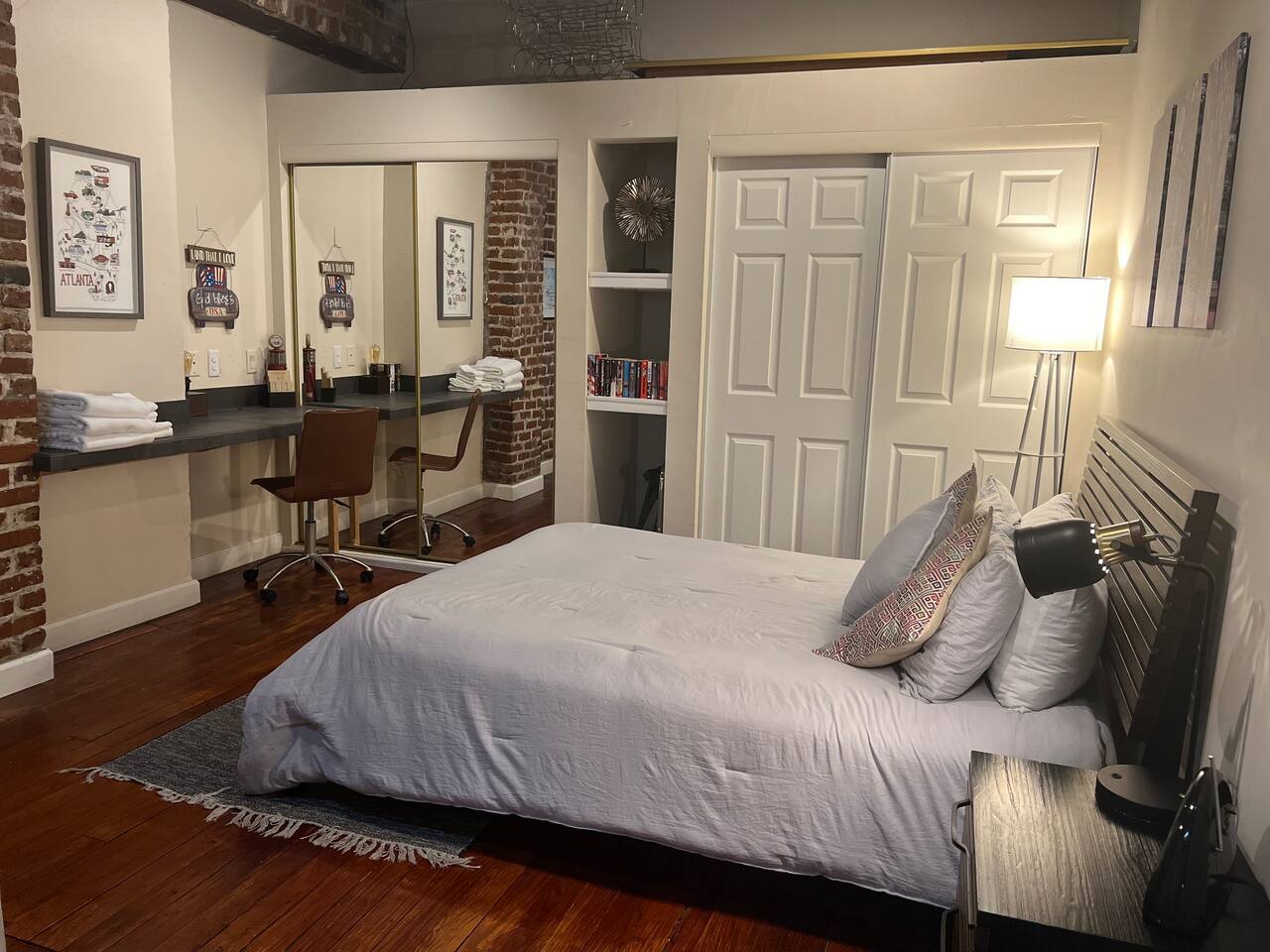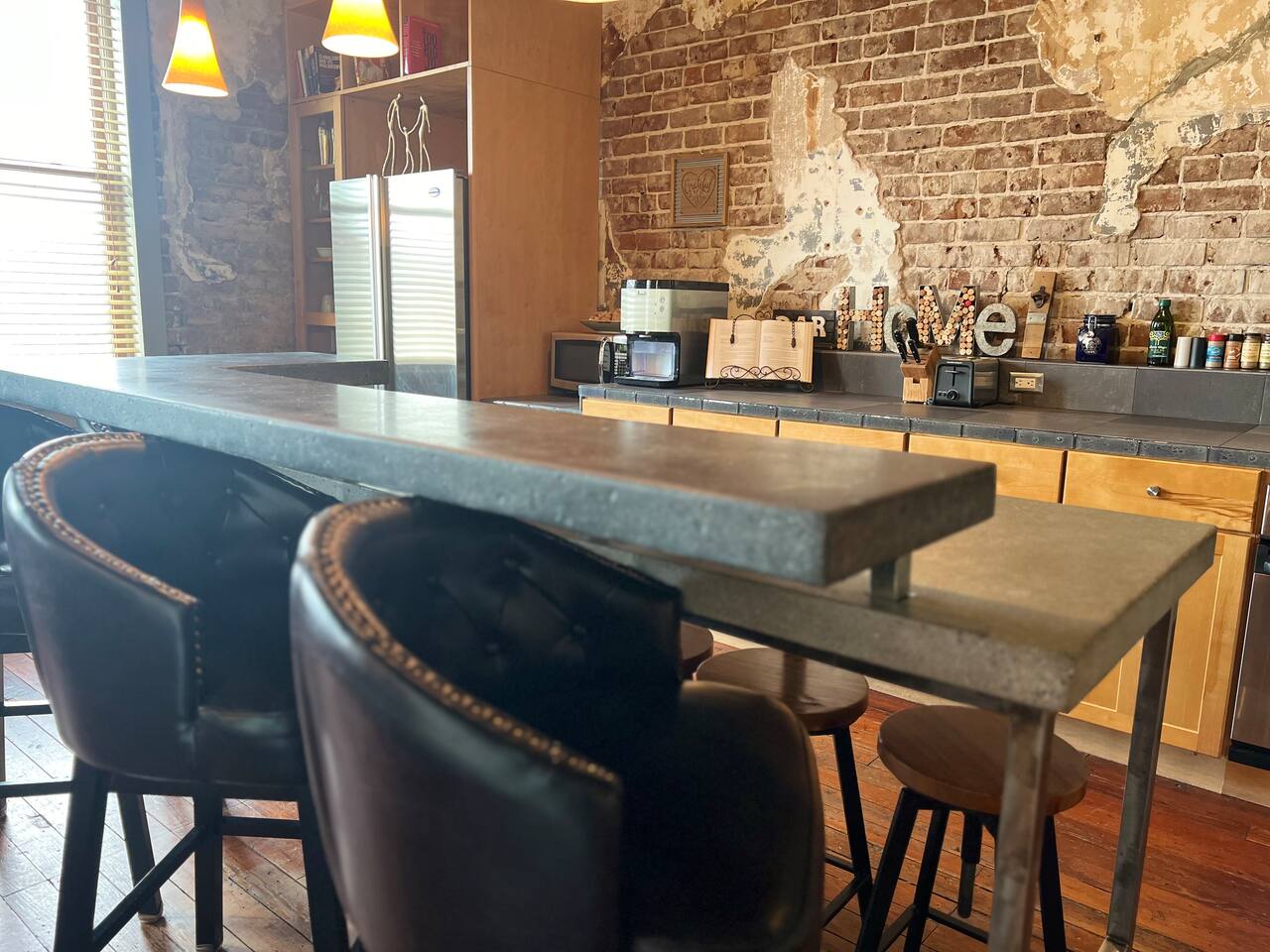 Escape to Southern Elegance in the Heart of Historic Savannah Welcome to our top-floor condo on Broughton Street, where Savannah’s storied charm meets modern living. Whether you're strolling cobblestone streets or savoring views of the skyline from your sunlit living room, this thoughtfully designed space offers a seamless blend of comfort, convenience, and character. <b>★ Condo Highlights ★</b> Reserved Parking Space – A rare luxury in the Historic District Prime Location – Elevator access to the heart of Savannah's North Historic District In-Unit Washer & Dryer – Perfect for longer stays Plush Beds – One King and one Queen for deep, restful sleep Smart TVs – Stay entertained with streaming access in every room <b>★ Kitchen & Dining ★</b> Cook, gather, and share meals in our open-concept kitchen, fully stocked for everything from morning coffee to a Southern-style dinner. Kitchen Includes: ✔ Full-size appliances ✔ Cookware, utensils, oils & spices ✔ Coffee maker, kettle, toaster ✔ Elegant dishware for meals and entertaining Dining Options: ✔ Dining table with seating for 4 ✔ Kitchen bar with 4 stools ✔ Children’s suction plates ✔ High chair for little guests <b>★ Bedrooms ★</b> Sleep peacefully in spaces designed for comfort, style, and flexibility. Primary Bedroom: ✔ King-size bed with plush linens ✔ Ensuite bathroom with spacious shower ✔ Smart TV, blackout curtains, dresser & closet Second Bedroom: ✔ Queen-size bed ✔ Smart TV, blackout curtains, dresser & closet Extras for Families: ✔ 2 Twin cots (for children ages 2–12) ✔ Pack ‘n Play with fitted sheets <b>★ Living Room ★</b> Relax in a light-filled space where vintage industrial touches meet cozy Southern style. Exposed brick, leather seating, board games, and skyline views set the tone for your Savannah story. Whether you’re winding down or gearing up for your next adventure. ✔ Plush leather sofas ✔ Large windows with downtown views ✔ Smart TV & Bluetooth speaker ✔ Board games for group fun <b>★ Bathrooms ★</b> Two full bathrooms with everything you need to freshen up and recharge. ✔ Shampoo, conditioner, body wash ✔ Antibacterial soap & extra towels ✔ Toilet paper & hair dryer Your Savannah Story Starts Here Whether you're exploring nearby landmarks, indulging in local cuisine, or simply enjoying the rare convenience of reserved downtown parking, our Broughton Street condo is your perfect base for discovering the magic of Savannah. From its rich history to its modern comforts, every corner is crafted to elevate your stay. <b>We Provide The Following Complementary Supplies:</b> → 3 packs of ground coffee and filters (each packet yields approx. 64oz of prepared coffee). → Small container full of single serving creamers. → 1 roll of paper towel → Dishwasher pods → Liquid hand washing dish soap → Antibacterial hand soap → Shampoo, conditioner and shower gel → 2 rolls of toilet paper per bathroom → Kleenex → Trash bags → Laundry detergent pods → Ziploc bags → To-go coffee/drink cups with lid If you require more of these items then you shall have to purchase your own and sufficient to last for your stay. SVR-03020 Don't hesitate to contact us with any questions you may have. Happy Travels!